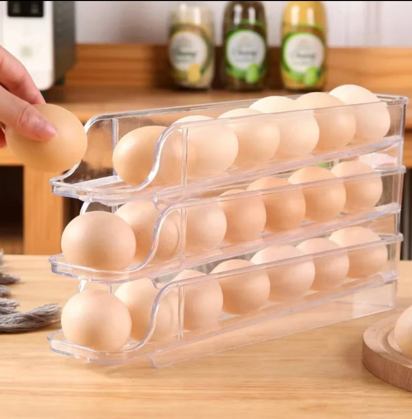 Porta Ovos Dispenser Automático – Bandeja Rolante com 3 Andares para até 21 Ovos 🥚🧊 Organize sua geladeira com praticidade e muito mais eficiência! O Porta Ovos Dispenser Automático é a solução inteligente para armazenar até 21 ovos, distribuídos em 3 andares deslizantes, que facilitam o uso no dia a dia. Com seu sistema de rolagem automática, os ovos descem suavemente à medida que são retirados, mantendo sempre os mais antigos na frente – ideal para manter a ordem de consumo e evitar desperdícios. Seu design compacto economiza espaço na geladeira e garante um visual moderno e organizado.