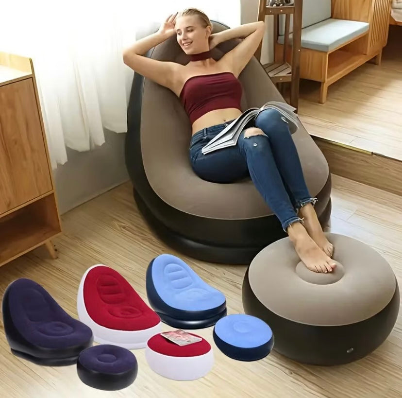 A Poltrona Inflável Ultra Lounge com Pufe Sofá Preguiçoso é a escolha ideal para quem busca conforto, praticidade e estilo em qualquer ambiente. Seja para relaxar em casa, acampamentos, quartos de estudantes ou até mesmo ao lado da piscina, este conjunto oferece uma experiência de descanso única. 🛋️